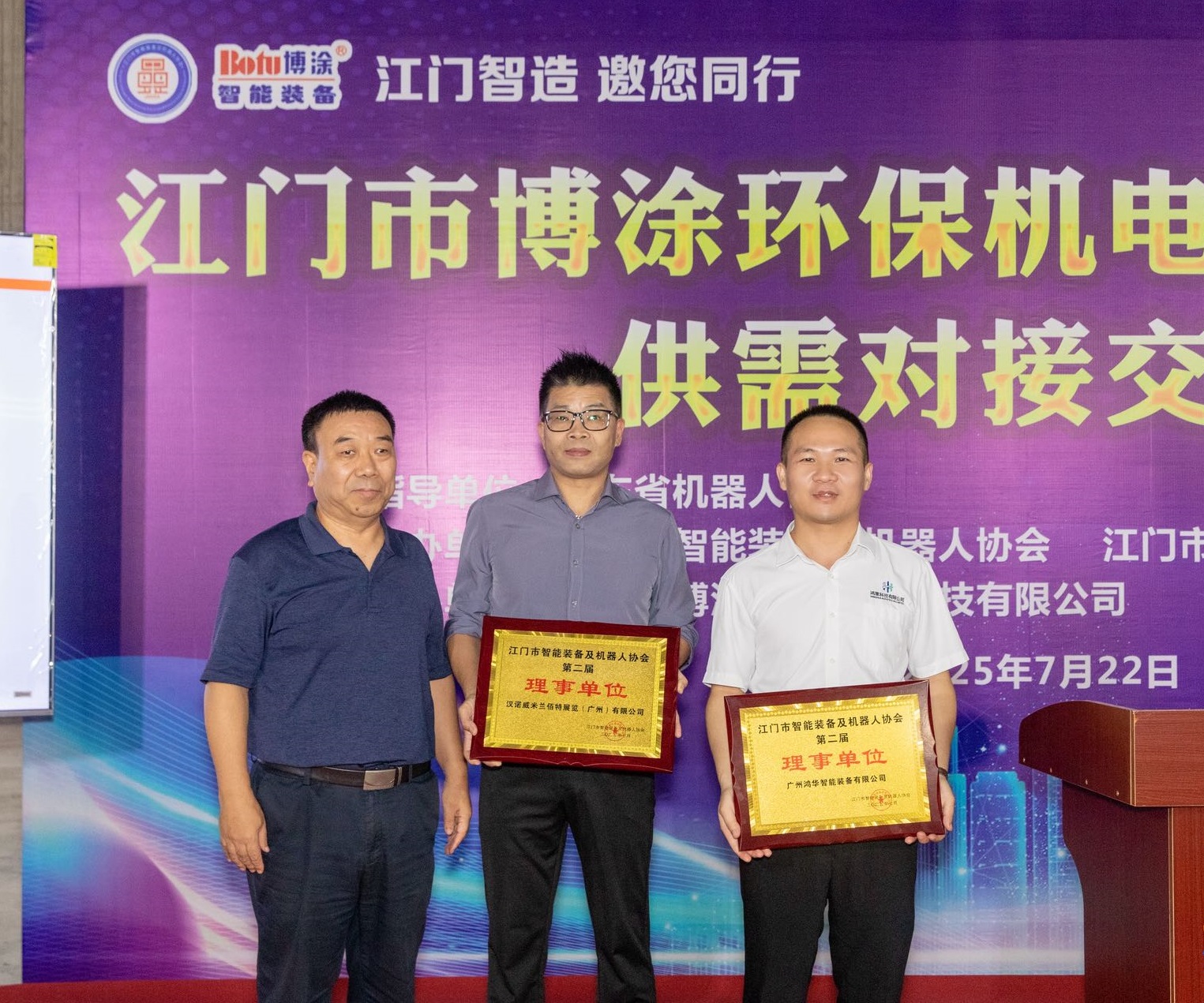 廣州鴻華智能裝備有限公司受邀參加“江門智造 邀您同行”【博涂站】供需對接交流會,被江門市智能裝備及機器人協(xié)會授牌理事單位